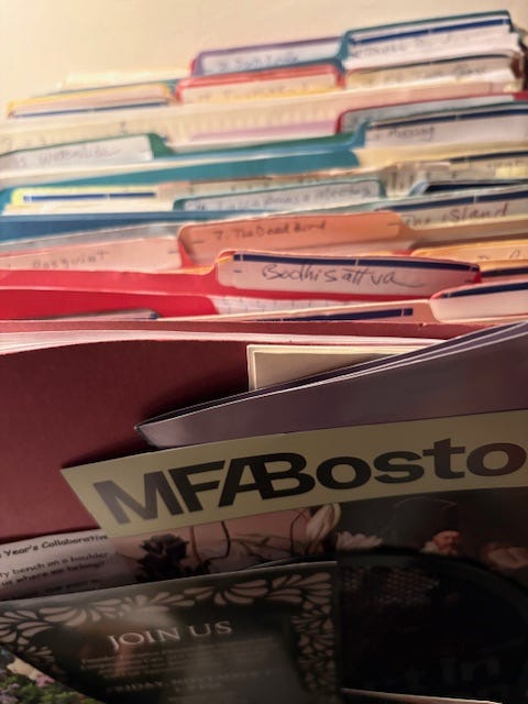 When I asked myself why must I look at them all vs. simply toss, I got my answer from a one-time Zoom talk for museum members by an artist at the Isabella Stewart Gardner Museum. James Prosek helped me to solve Mystery #4: why must I look once more at each bit of research I saved while writing my book Burnt Umber?