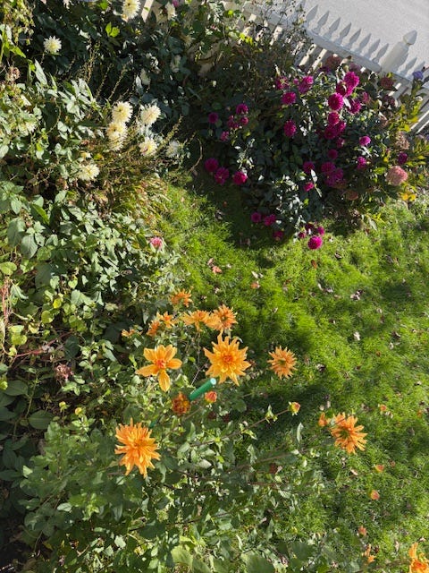 The new fall season gives me hope. I’ve made it this far (after one year since my diagnosis). Now I’m planning to dig up the dahlia tubers when their leaves turn black from the frost. I will have my neck brace by then. With help, I will plant 50 tubers in April in pots in the basement and plant some directly in the ground in May. My new physical therapist said “Your muscles are strong and we can keep them that way with light resistance and strengthening exercises with bands.” So it’s full steam ahead without overdoing it.